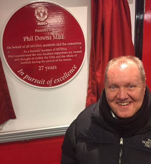 Following his time with MUDSA, it was a fitting tribute that in 2016, the Ability Suite at Old Trafford was named in his honour — the Phil Downs Ability Suite — a lasting legacy within the stadium he loved.