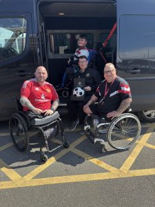 I met with Michael and Luke at the game on Sunday and along with fellow committee member Al Rayment presented the signed ball to them.